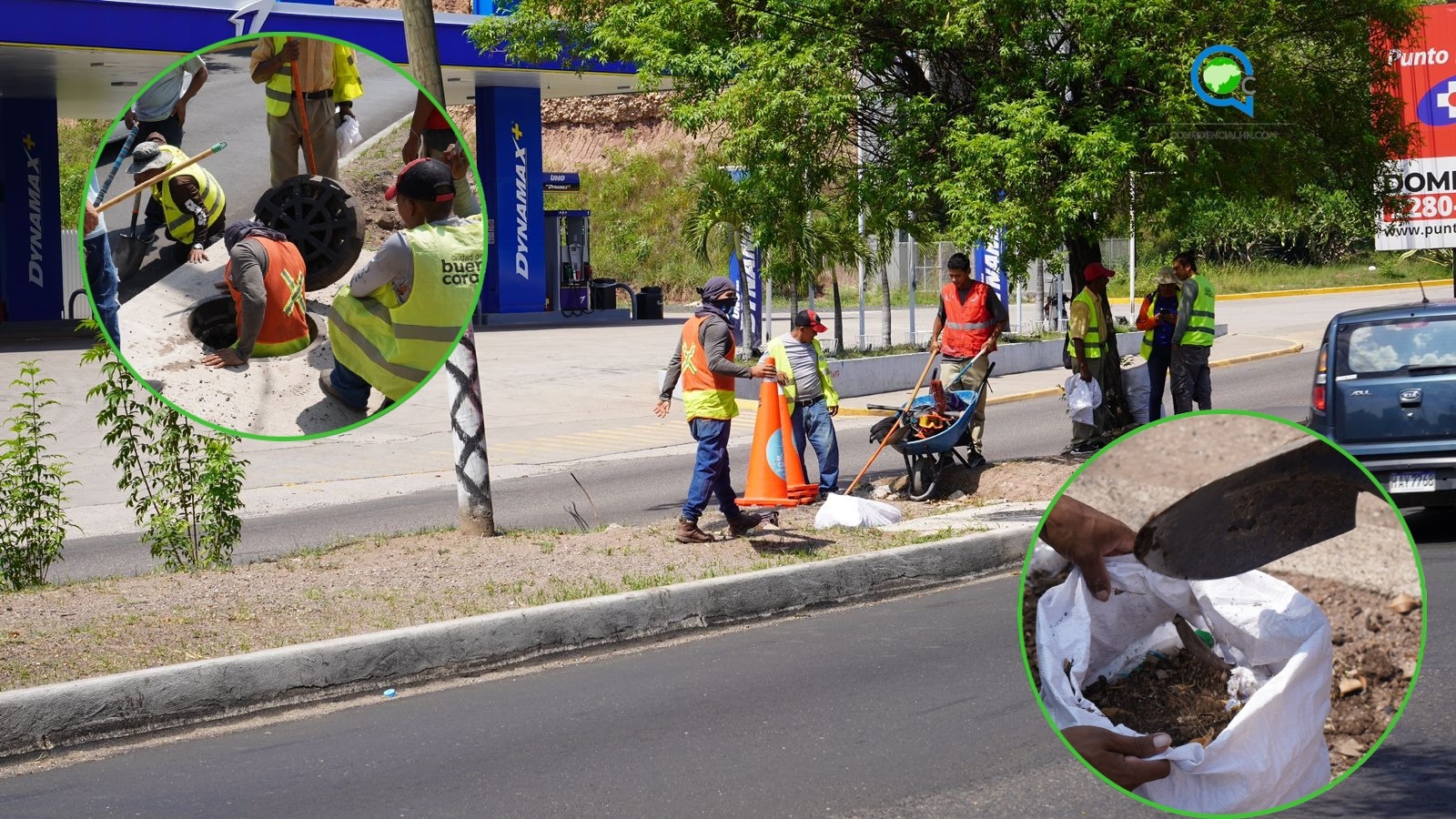 Por ello, el personal del Comité de Emergencia Municipal (Codem), la Gerencia de Aseo Municipal, las microempresas de la Dirección Control y Seguimiento y la Unidad de Gestión Ambiental (UGA), concentraron a 300 colaboradores en el bulevar Fuerzas Armadas, a inmediaciones del Hotel LQ, así como, maquinaria pesada y herramientas para realizar las labores con mayor eficacia.