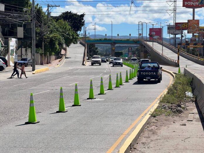 Los equipos de la Alcaldía Municipal del Distrito Central (AMDC) realizan trabajos de reparación de un socavón en un tramo del bulevar Resistencia