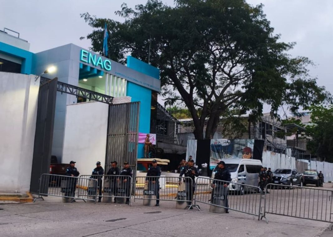 La Empresa Nacional de Artes Gráficas (ENAG), encargada de imprimir material oficial y electoral, permanece bajo resguardo de fuerzas antimotines en su sede cercana a la Corte Suprema de Justicia (CSJ), en Tegucigalpa.