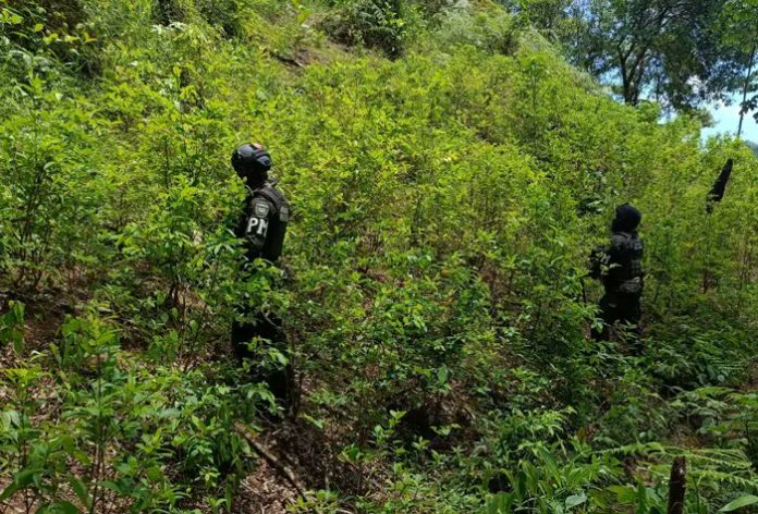 Las autoridades informaron que aseguraron una plantación de cinco manzanas con aproximadamente 20 mil arbustos de coca.