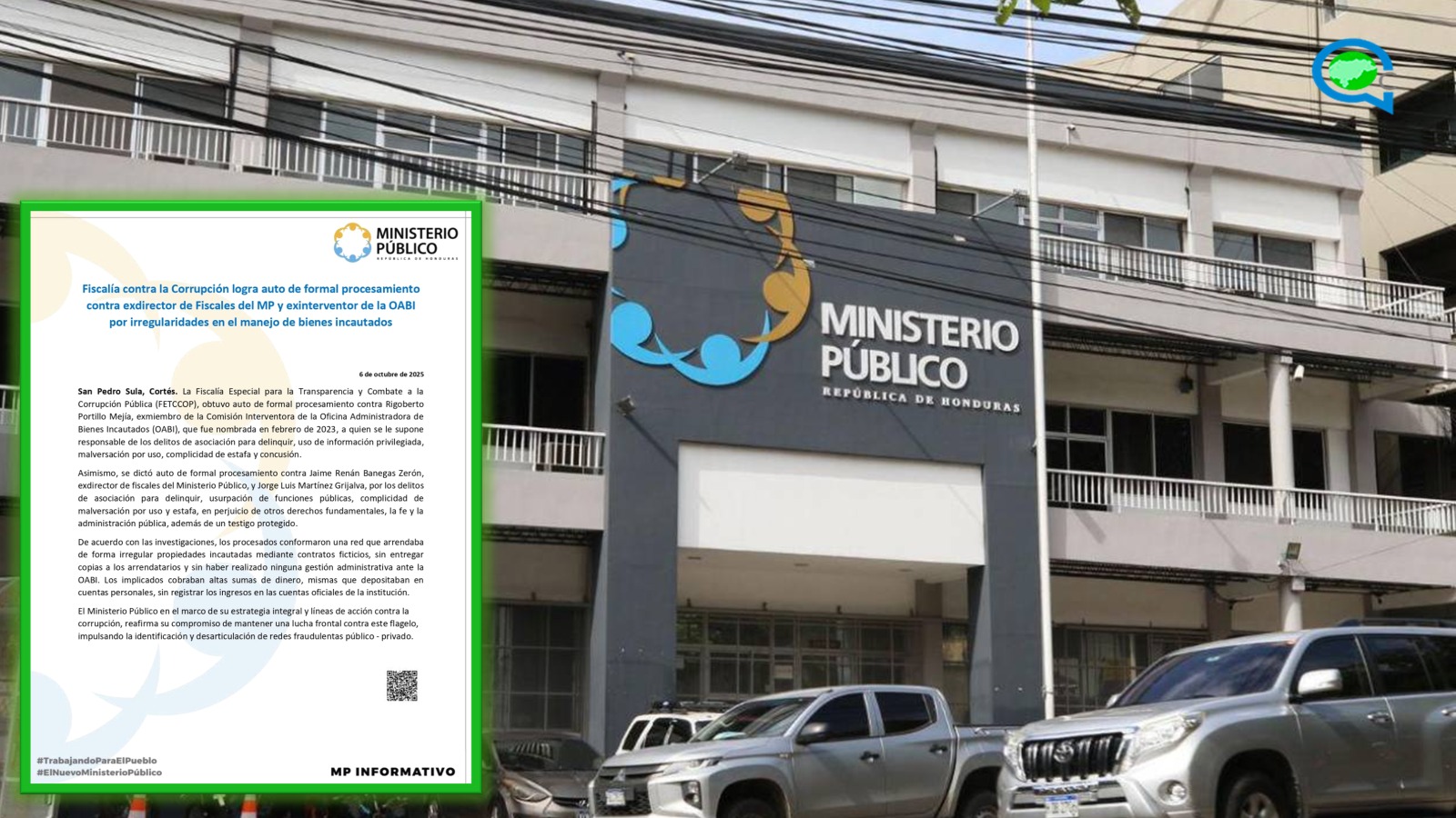 La Fiscalía Especial para la Transparencia y Combate a la Corrupción Pública (FETCCOP) logró un auto de formal procesamiento contra Rigoberto Portillo Mejía, exmiembro de la Comisión Interventora de la Oficina Administradora de Bienes Incautados (OABI), y otros dos exfuncionarios vinculados a irregularidades en el manejo de bienes incautados.