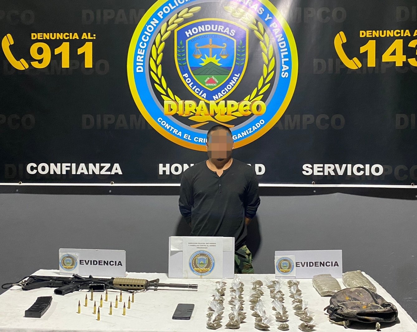 Los funcionarios policiales decomisaron un arma de guerra, tipo fusil AR, con su respectivo cargador y proyectiles, 2 paquetes con supuesta marihuana, 45 bolsitas con esa misma droga y un teléfono celular.