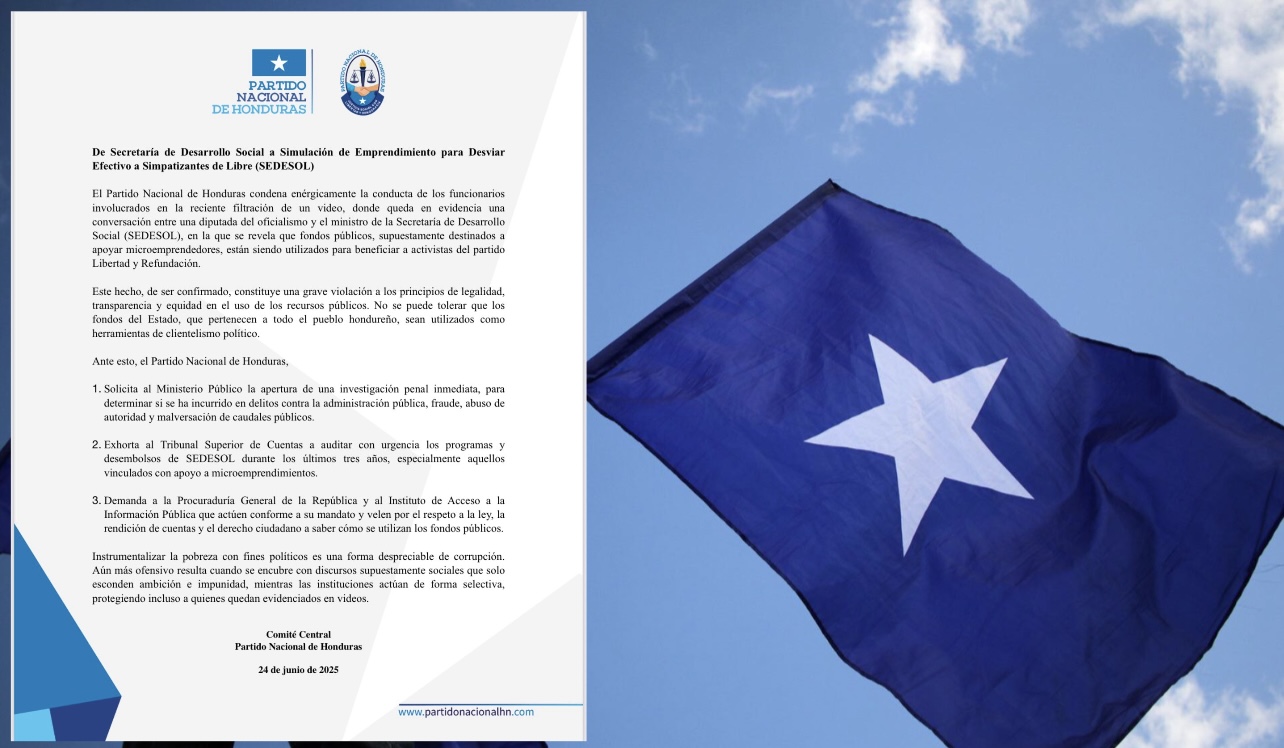 El Partido Nacional de Honduras denunció este martes que la Secretaría de Desarrollo Social (SEDESOL) habría utilizado programas sociales como una fachada para desviar fondos públicos y beneficiar políticamente a simpatizantes del partido oficialista Libertad y Refundación (Libre), en un esquema que —según la oposición— responde a prácticas de clientelismo con dinero del Estado.
