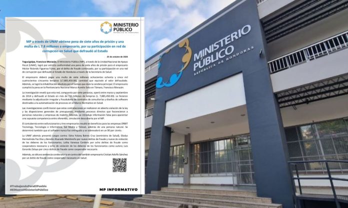 Según la investigación, una red de corrupción compuesta por siete personas operó en la Secretaría de Salud entre marzo y septiembre de 2014 y defraudó más de 7.8 millones de lempiras al Estado.