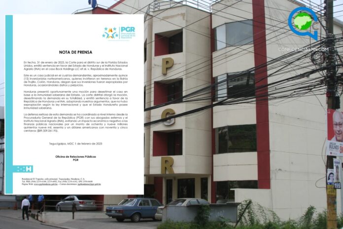 En ese sentido, la PGR dijo que la Corte del Distrito Sur de Florida adoptó los argumentos presentados, de que no hubo expropiación de inversiones a la empresa demandante, según la ley internacional, y que el Estado hondureño posee inmunidad soberana.