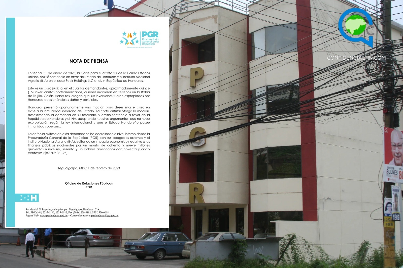 «La Corte distrital otorgó la moción, desestimando la demanda en su totalidad, y emitió sentencia a favor de la República de Honduras y el INA», indicó la Procuraduría.