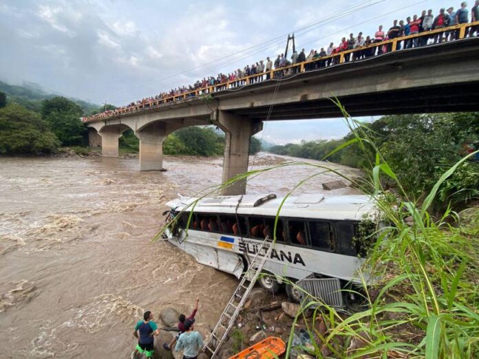 Detallaron que el bus cayó a una hondonada del río Higuito, “en la carretera internacional que conduce a Ocotepeque, exactamente a la altura del abate del puente, volcó el bus, cayendo directamente al río de forma lateralizada, varias personas resultaron lesionadas”.