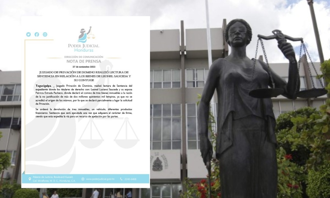 El juzgado indicó la privación de tres bienes inmuebles, más dos millones quinientos mil lempiras que los implicados no pudieron justificar.