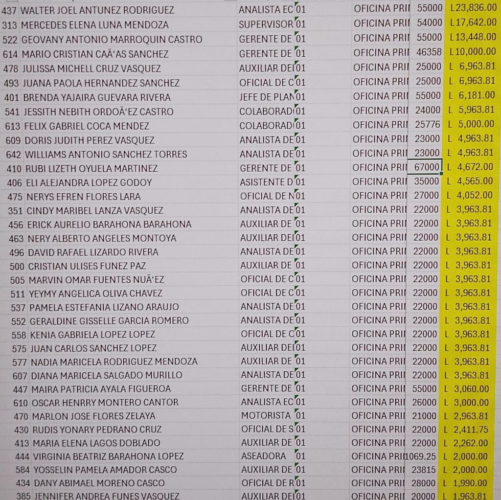 - Subidas salariales de hasta L23 mil habrían sido otorgadas a personal de confianza sin aval de la junta directiva ni de Finanzas