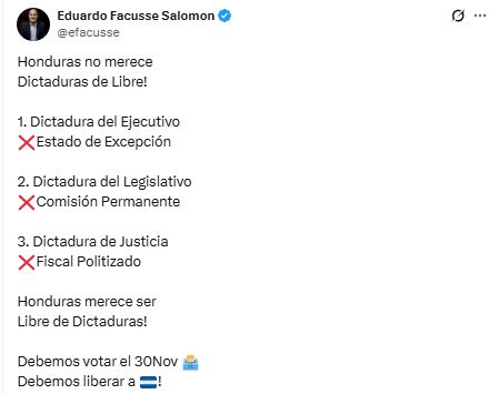 “Debemos votar, porque solo así podremos liberar a Honduras”, expresó, subrayando que la participación ciudadana será clave para frenar lo que considera una deriva autoritaria del gobierno de Libre.