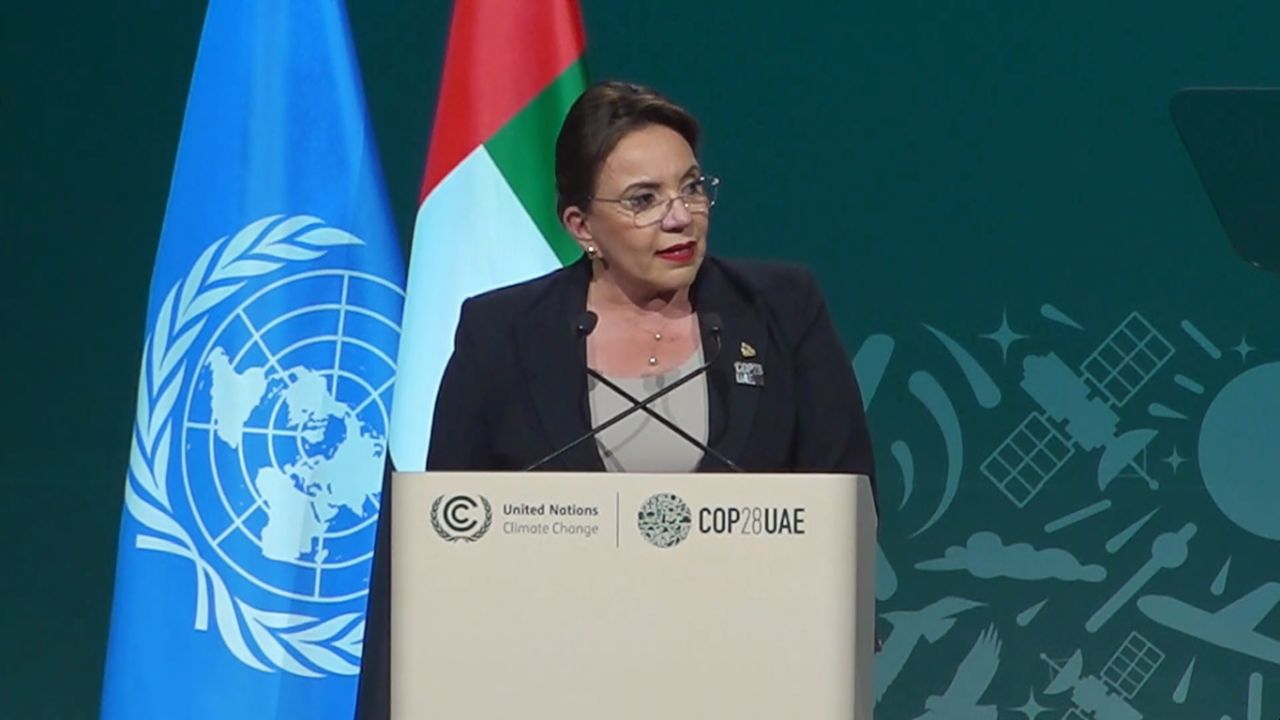 La presidenta de Honduras Xiomara Castro participó este viernes en la Conferencia de las Naciones Unidas sobre el Cambio Climático de 2023 (COP28).