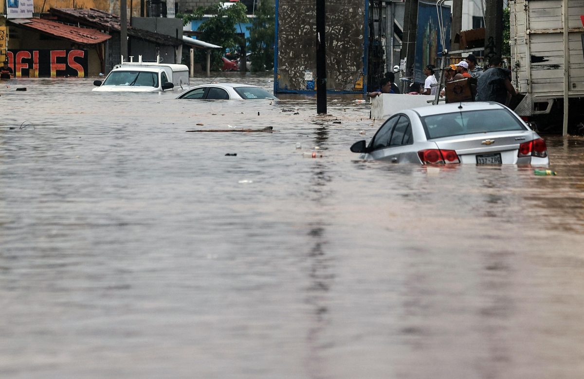 Este jueves, la zona Diamante de Acapulco, fuerte área turística, quedó completamente inundada, incomunicada y sin energía eléctrica tras tres días consecutivos de lluvias.