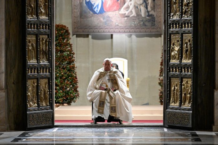 El papa Francisco deseó que el Jubileo que comenzó este martes con la apertura de la Puerta Santa dé esperanza a los países abrumados por las deudas y profanados por la guerra, en su homilía de la Misa del Gallo celebrada en la basílica de San Pedro.