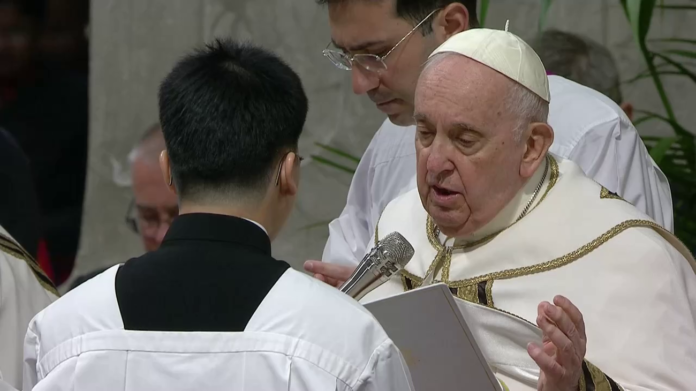 En la misa de hoy se conmemora la institución del sacramento del orden sacerdotal por Jesucristo durante la Última Cena y está dedicada a la renovación por parte de los sacerdotes de los votos de pobreza, castidad y obediencia, por lo que a la ceremonia participaron sobre todo los curas de la diócesis de Roma, pero también llegados de otros puntos de Italia.