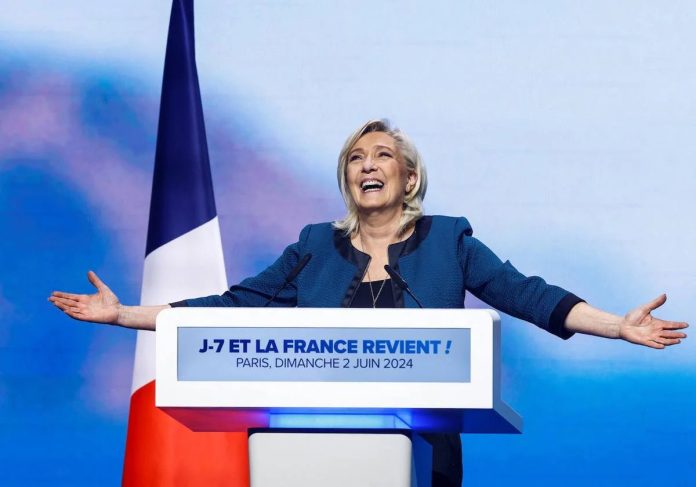 El partido de extrema derecha Agrupación Nacional (RN) de Marine Le Pen lideraba en la primera ronda de las elecciones parlamentarias de Francia el domingo, según los sondeos a boca de urna, pero el impredecible resultado final dependerá de los días de tira y afloja antes de la segunda vuelta de la próxima semana.