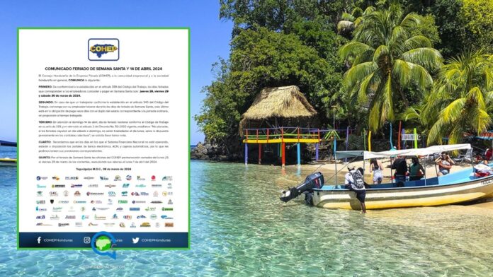 De igual forma, el Consejo Hondureño de la Empresa Privada (Cohep) asentó que el domingo 14 de abril, feriado nacional, no será trasladado al día lunes basado en el artículo 339 del Código del Trabajo.