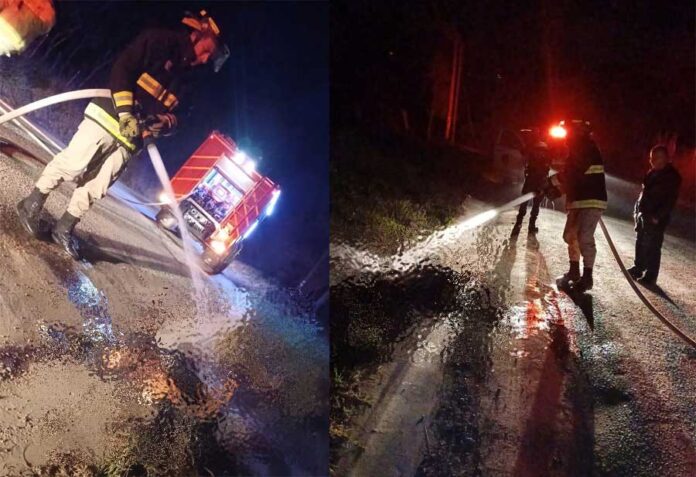 El hecho se registró a 200 metros de la Academia Los Pinares, fue atendido por elementos del Cuerpo de Bomberos, que al llegar al lugar comprobaron que se trataba del cadáver de un hombre no identificado que estaba envuelto en llamas.