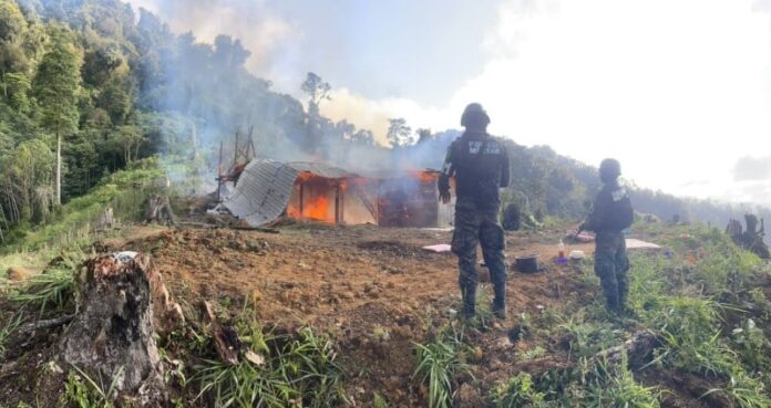 “En total se aseguraron 40 manzanas de tierra con más de 120 mil arbustos de hoja de coca y una narcolaboratorio”, agregó el oficial.