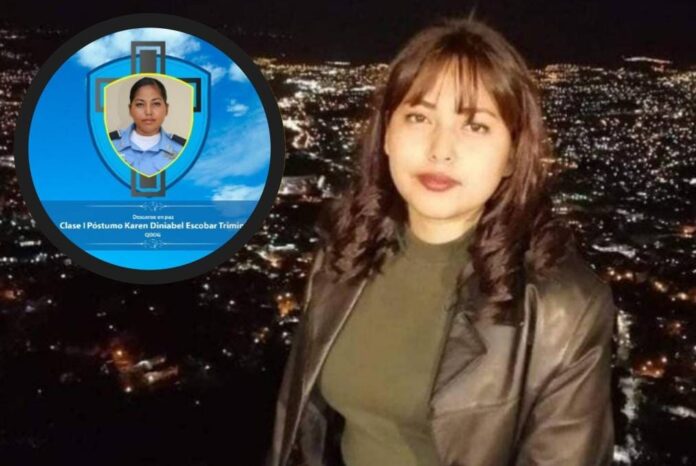 “Lamentamos informar el deceso de nuestra compañera Clase I de Policía Póstumo Karen Diniabel Escobar Triminio (Q.D.D.G.), quien falleció en cumplimiento del deber Nuestro más sentido pésame a familiares, compañeros y amigos”, mensaje de la Policía Nacional.