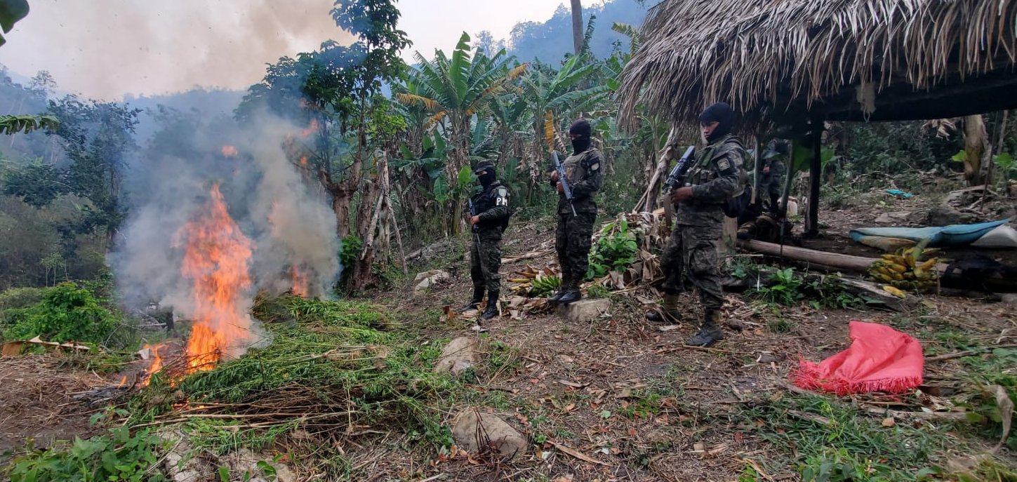 Miembros de las Fuerzas Armadas de Honduras (FFAA) detectaron y erradicaron tres áreas de cultivo de supuesta marihuana en el sector de los Encuentros, municipio de Esquipulas del Norte, Olancho.