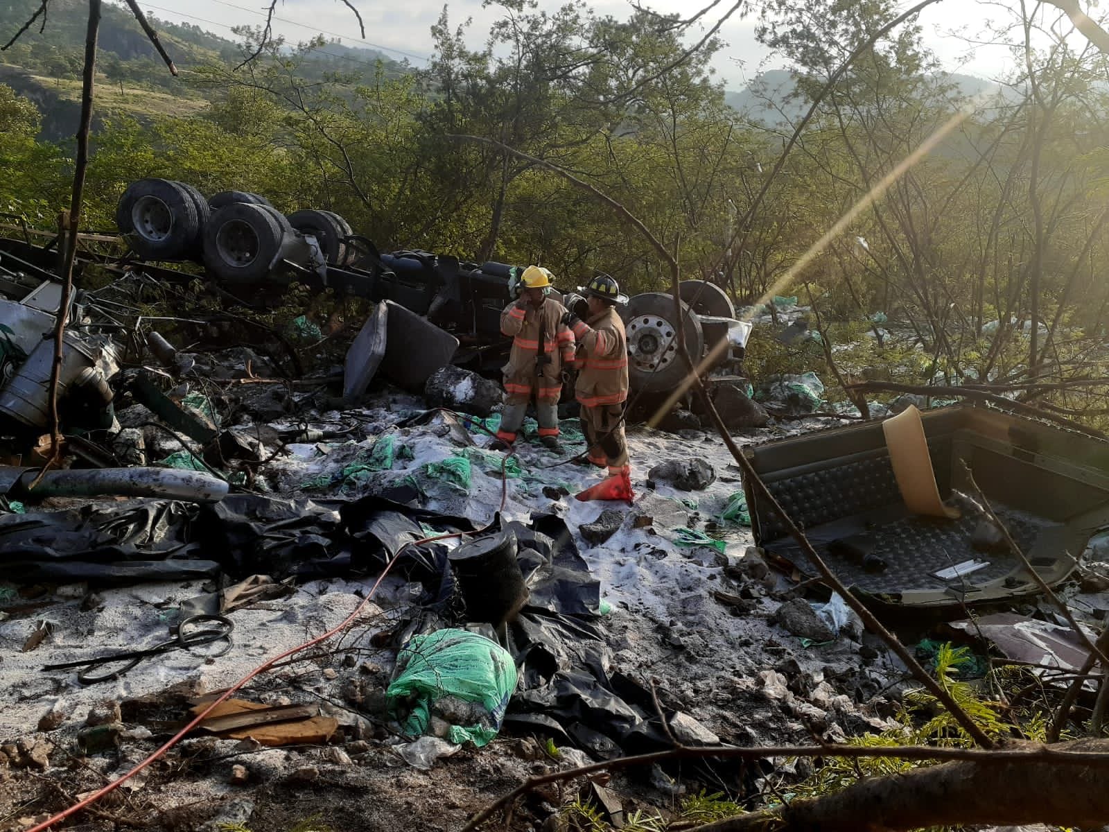 De acuerdo al informe preliminar del Cuerpo de Bomberos que llegó a la zona en la unidad HRB0724, detalló que se trata de un accidente de tránsito entre dos vehículos tipo rastras, un cabezal Kenworth color verde, placa HDX8773 transporta UREA, segundo vehículo Placa TRB9142 color ocre, transporta cemento, que quedaron totalmente destruidos.