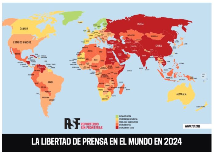 En el marco del Día Mundial de la Libertad de Prensa, Reporteros Sin Fronteras (RSF) lanza la clasificación mundial de la libertad de prensa 2024 y revela que el periodismo está bajo presión política.