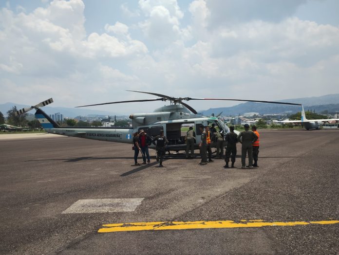 Alan Edgardo Flores Rodil, fue trasladado hacia la capital hondureña en un Helicóptero Bell 412 de la FAH desde La Unión, Olancho hacia la Base Aérea “Coronel Hernán Acosta Mejía”.