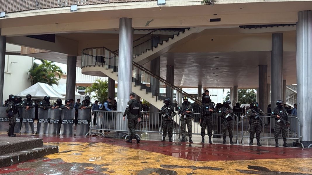 El centro histórico de Tegucigalpa amaneció fuertemente resguardado por elementos de las Fuerzas Armadas de Honduras, mientras el acceso al Congreso Nacional de Honduras permanece bajo control de todas las fuerzas de seguridad del país, que mantienen restricciones estrictas para el ingreso a las instalaciones del Poder Legislativo.