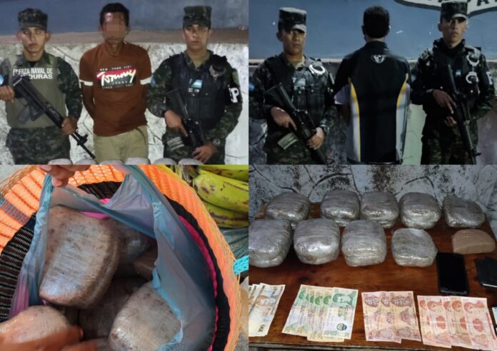 Durante un operativo de patrullaje, ejecutado por parte de infantes de marina de la Base Naval de Amapala, en conjunto con elementos de la Policía Militar del Orden Público (PMOP), se le dio captura a dos sujetos en posesión de supuesta marihuana en el Muelle Municipal de Coyolito, zona sur de Honduras.