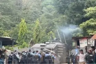En tanto, los agentes policiales llegaron con tanquetas, gas lacrimógeno y maquinarias para proceder a destruir las viviendas.