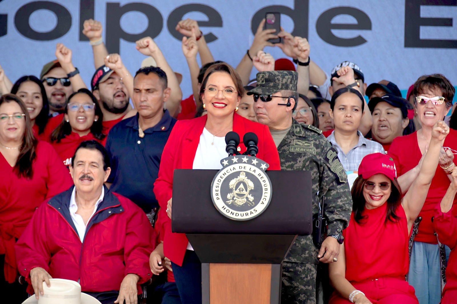 Imagen principal: Xiomara interviene en un mitin de Libre durante el fin de semana del Día de la Independencia de Honduras. Crédito: Gobierno de Honduras.