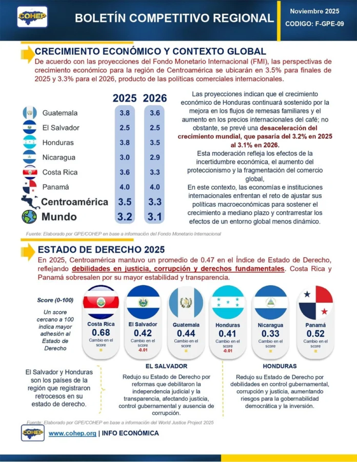 En el caso de Honduras, el crecimiento económico se sostiene gracias al aumento de las remesas y al alza en los precios internacionales del café, sin embargo, el Cohep advierte que este dinamismo “no se traduce en una reducción efectiva de la pobreza ni en la generación de empleo formal”.