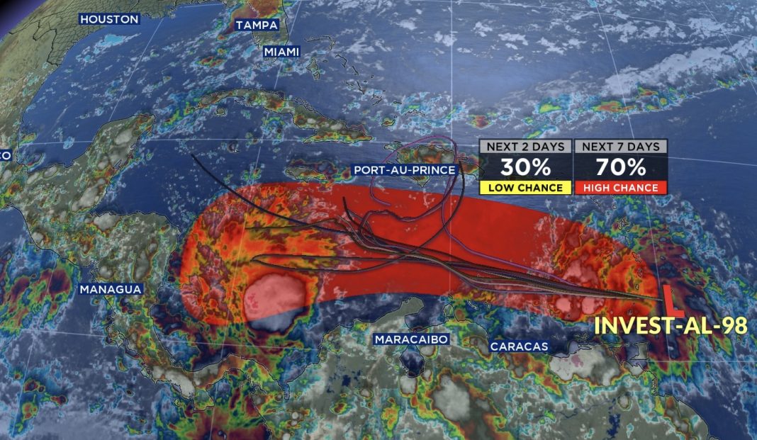 Las proyecciones del Centro Nacional de Huracanes (NHC, por sus siglas en inglés) indican una probabilidad de desarrollo ciclónico del 30% en dos días y del 70% en siete días, cifras que incrementan la posibilidad de impacto indirecto o directo sobre el territorio hondureño.