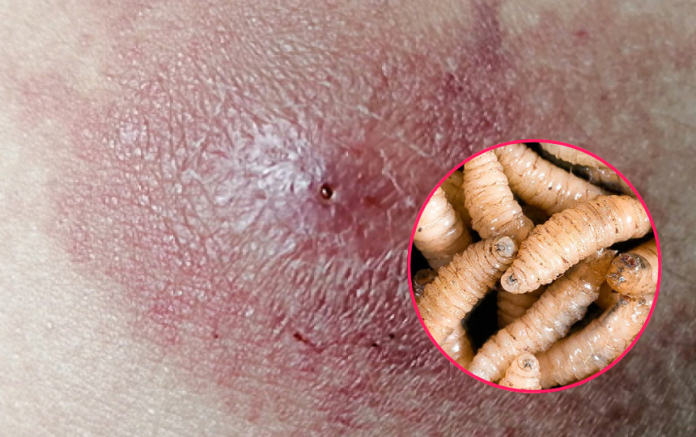 La miasis por gusano barrenador es una enfermedad parasitaria provocada por la fase de larva o gusano de la mosca Cochliomyia hominivorax, que deposita sus huevos en heridas abiertas de animales de sangre caliente, incluidos los humanos.