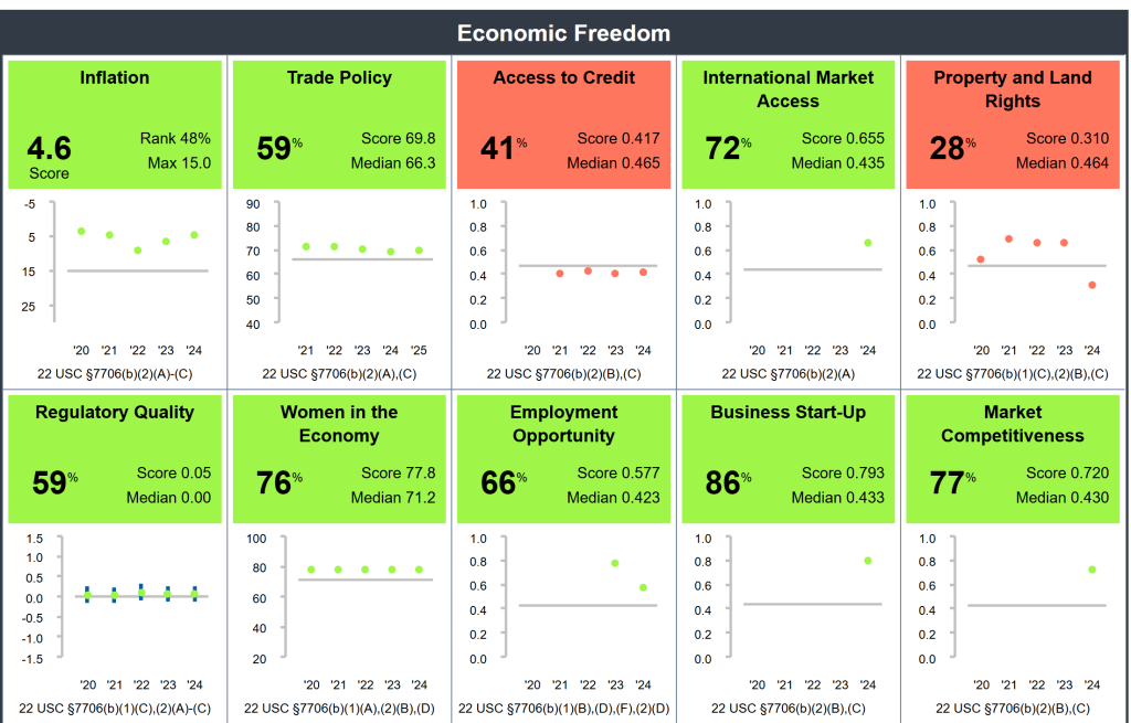 - Libertad Personal: 29.9, apenas por encima del mínimo requerido (25.0).
