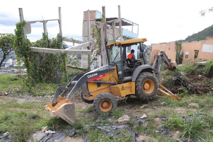 La zona donde ocurrió un deslizamiento de ladera en la colonia Guillén en septiembre del 2022, inició el proceso de estabilización, con la remoción de escombros por parte de los equipos de la Alcaldía Municipal del Distrito Central (AMDC).