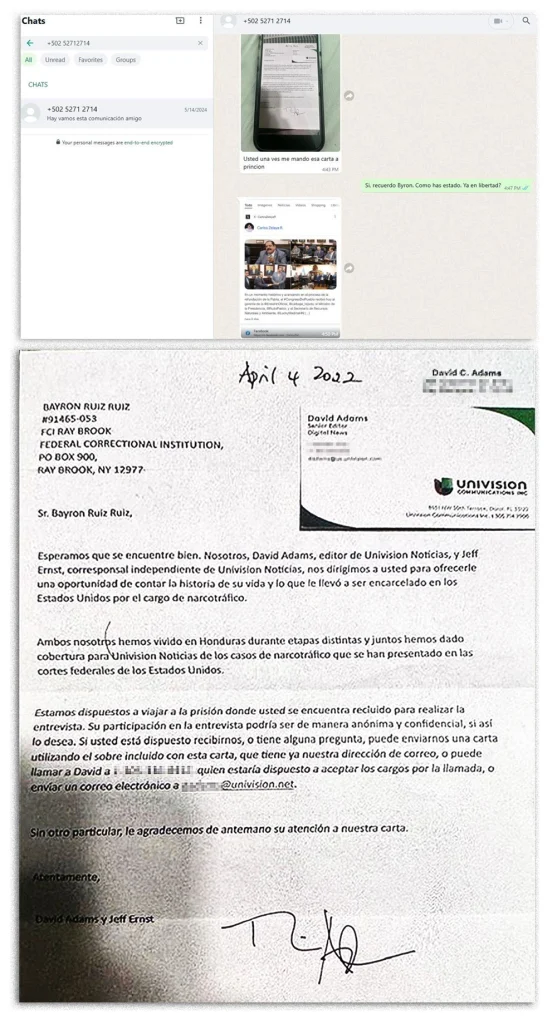 El 4 de abril de 2022 enviamos una carta a Ruiz para solicitarle una entrevista. En ese momento, se encontraba encarcelado en el norte del estado de Nueva York. La carta fue solo una de las decenas que enviamos como parte de una investigación iniciada en el otoño de 2019, tras el juicio por narcotráfico de Juan Antonio “Tony” Hernández, exlegislador y hermano del entonces presidente de Honduras, Juan Orlando Hernández.
