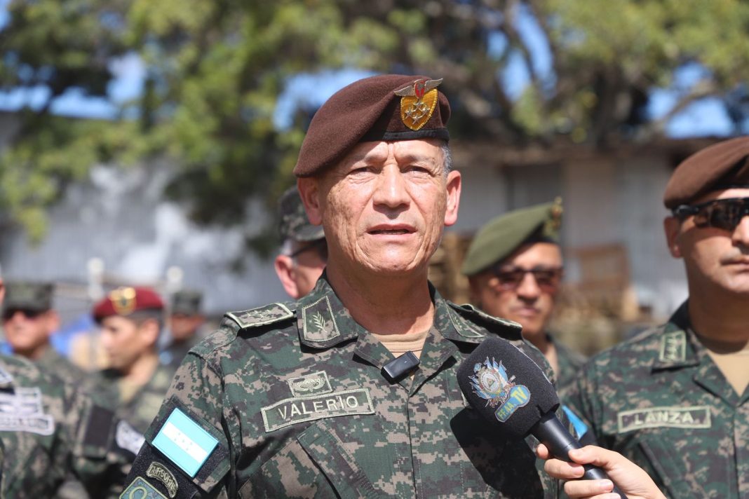 El jefe del Estado Mayor Conjunto de las Fuerzas Armadas, Héctor Valerio Ardón, realizó este sábado una visita de supervisión al Centro Logístico Electoral (CLE), ubicado en las instalaciones del Instituto Nacional de Formación Profesional (Infop), donde constató de primera mano la labor de los soldados asignados a la seguridad del recinto.