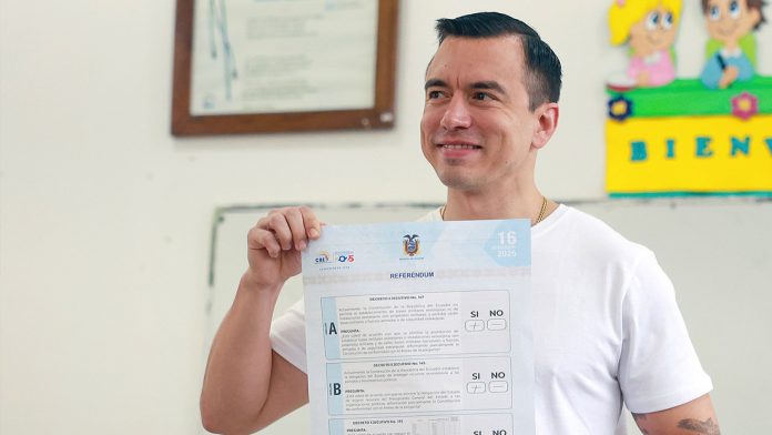 (RT en Español)- Millones de ecuatorianos rechazaron el domingo eliminar la prohibición de establecer bases militares extranjeras en el territorio nacional y la elaboración de una nueva Constitución nacional, en un referéndum y una consulta popular impulsados por el presidente Daniel Noboa.