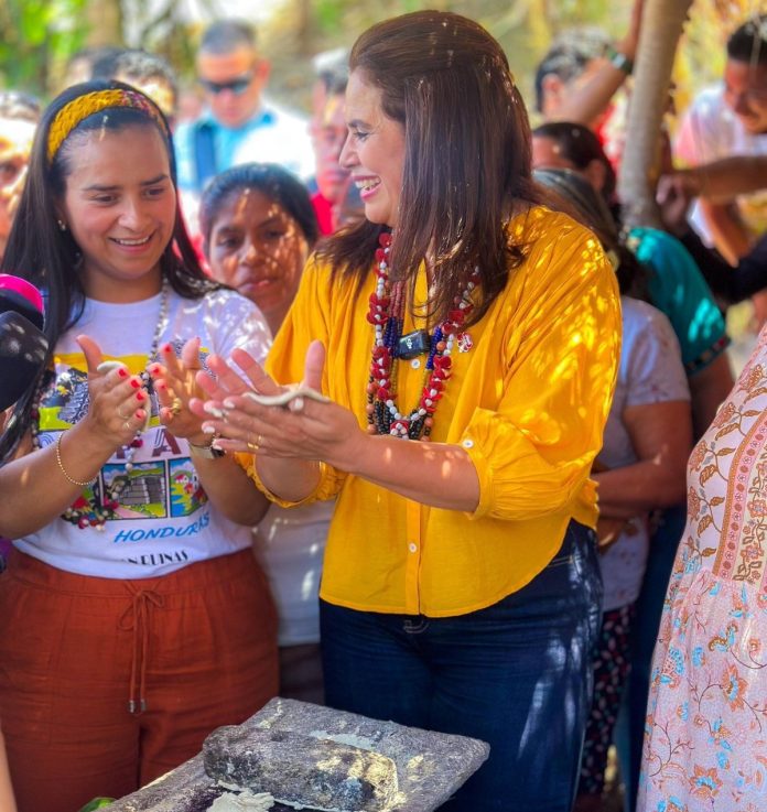 Rixi Moncada, secretaria de Defensa y candidata presidencial del partido Libertad y Refundación (Libre), durante su visita el fin de semana a la comunidad indígena Maya-Chortí en El Carrizalón, Copán, expresó “los críticos van a decir que estoy haciendo show”, tras aparecer en un nuevo video en el que se muestra quebrando maíz y haciendo tortillas.