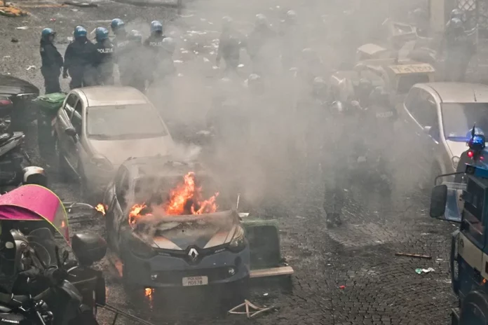 Las autoridades italianas han calmado los enfrentamientos y su objetivo es ahora mantener tranquilos los aledaños al Estadio Diego Armando Maradona, en los que por ahora no ha habido signos de violencia.