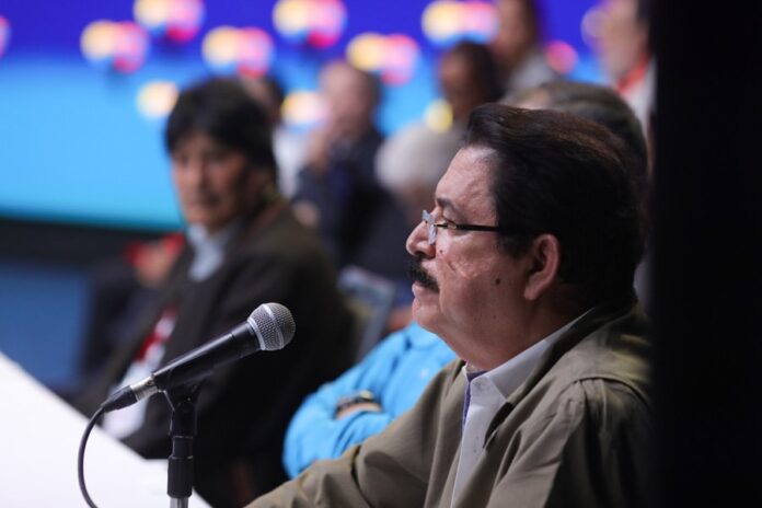 En el acto estuvieron presentes los presidentes y expresidentes de la región invitados, Luis Arce, Daniel Ortega, Rafael Correa, Manuel Zelaya y Evo Morales.