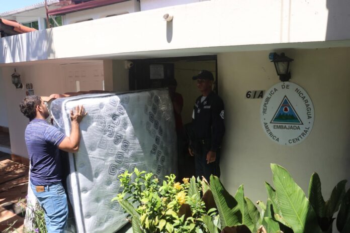 Mientras en Panamá se discute si el Gobierno debe otorgar el salvoconducto al expresidente Ricardo Martinelli, condenado por blanqueo, para irse a Nicaragua, que le dio asilo político, el aún candidato a la reelección acondicionaba a su gusto este jueves la sede diplomática nicaragüense.