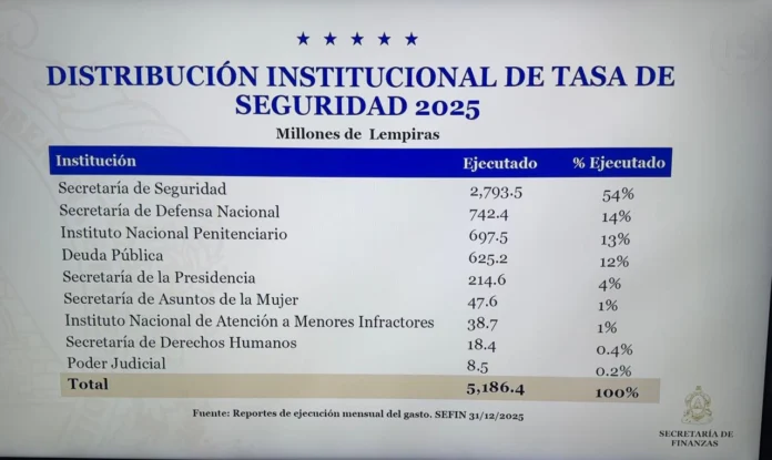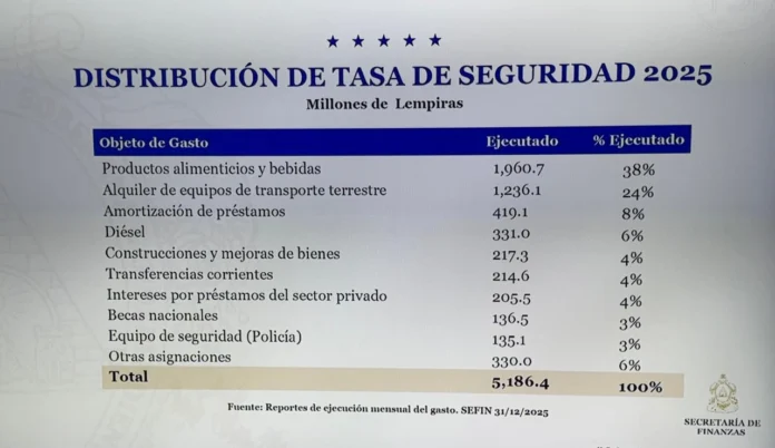 En total, durante el último año del gobierno de Castro, la Secretaría de Finanzas ejecutó 5,186.4 millones de lempiras provenientes de la Tasa de Seguridad.