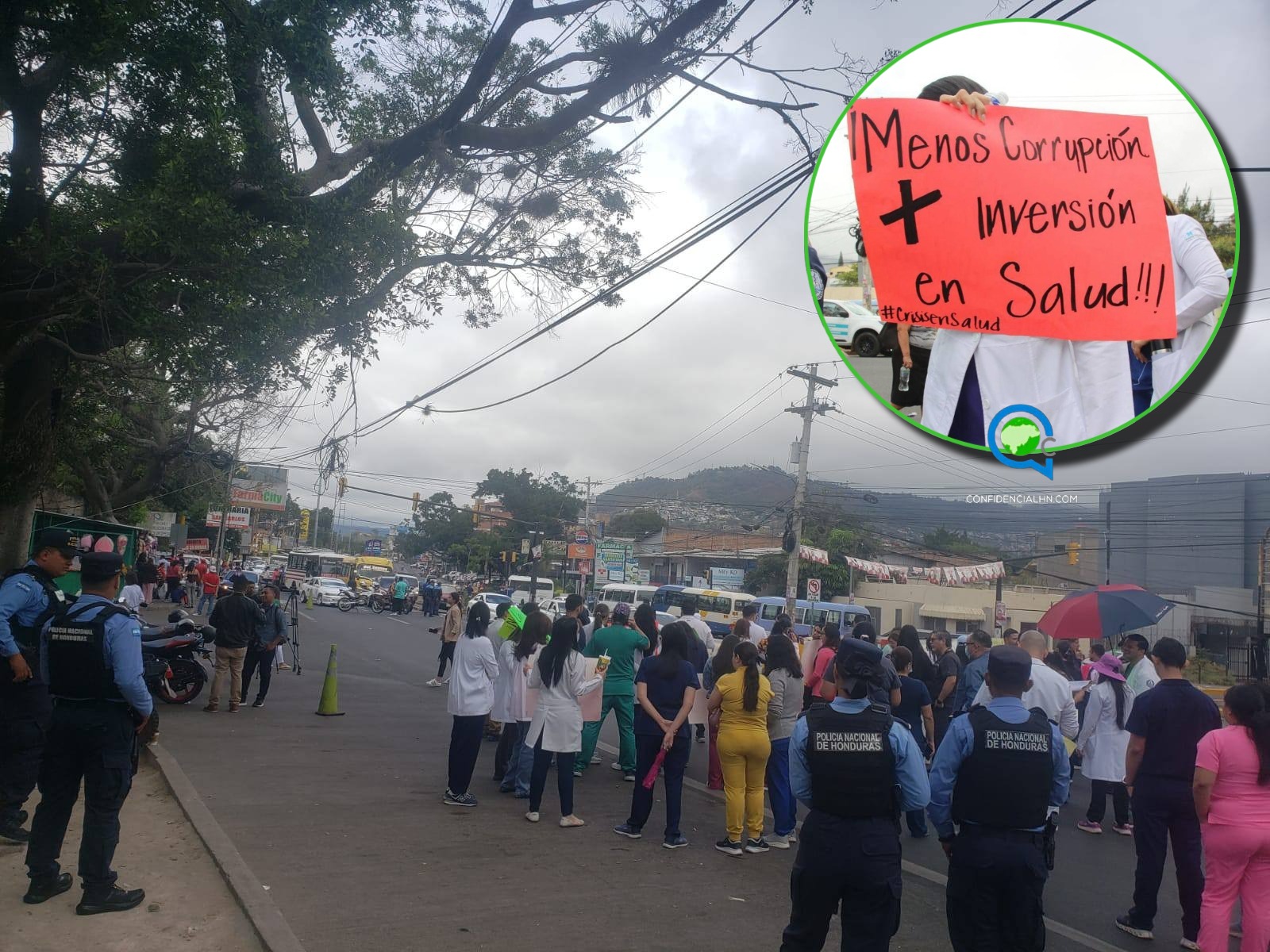 La protesta provoca que al menos 5 mil pacientes no sean atendidos cada día, aunado a ello el congestionamiento vial que genera la toma a la altura del bulevar Suyapa, un acceso sumamente vital para el trafico vehicular en la capital.
