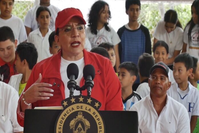 La presidenta Xiomara Castro se quejó este viernes que su gobierno está bajo ataque de las fuerzas “narcoconservadoras” de Honduras, durante la inauguración de una cancha de usos múltiples en la colonia El Sitio de la capital.