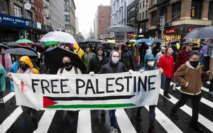Este tipo de protestas, en las que predomina la gente joven, intentan presionar la política exterior del presidente Joe Biden en medio de un año electoral.