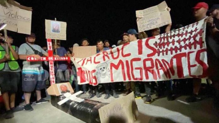Por la muerte, cientos de hondureños protestaron en las calles de Huixtla con un ataúd forrado de negro con la foto del fallecido y carteles de denuncia.
