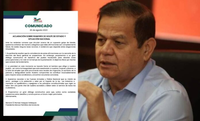 No existe base racional ni evidencia que se pretenda dar un Golpe de Estado al actual gobierno, señaló este sábado el Partido de la Alianza Patriótica de Honduras (APH).