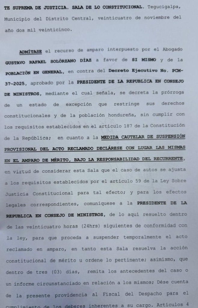 El llamado de Pineda, surgió luego que, ayer, la Sala de lo Constitucional de la CSJ, conoció en sesión de Pleno, el recurso de amparo presentado por el abogado Gustavo Solórzano en contra el decreto PCM-37-2025, por medio del cual el Consejo de Secretarios de Estado, aprobó la ampliación del estado de excepción vigente.